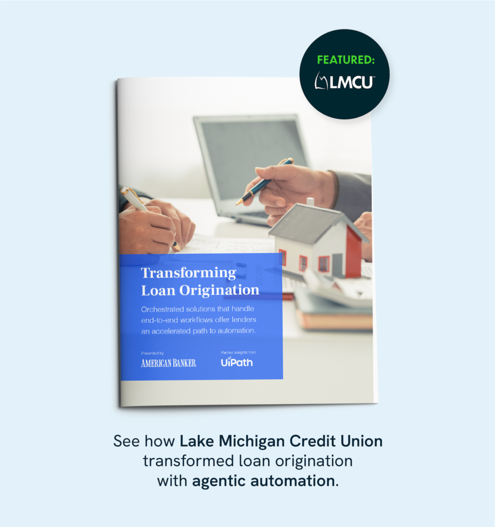 By partnering with Greenlight and UiPath, Lake Michigan Credit Union adopted an agentic orchestration model that transformed its home equity line of credit (HELOC) process.